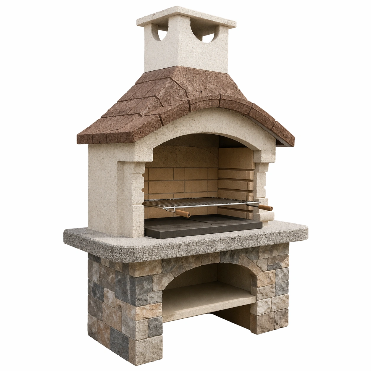 Barbacoa de piedra natural y ladrillo con chimenea 120x70x200 cm